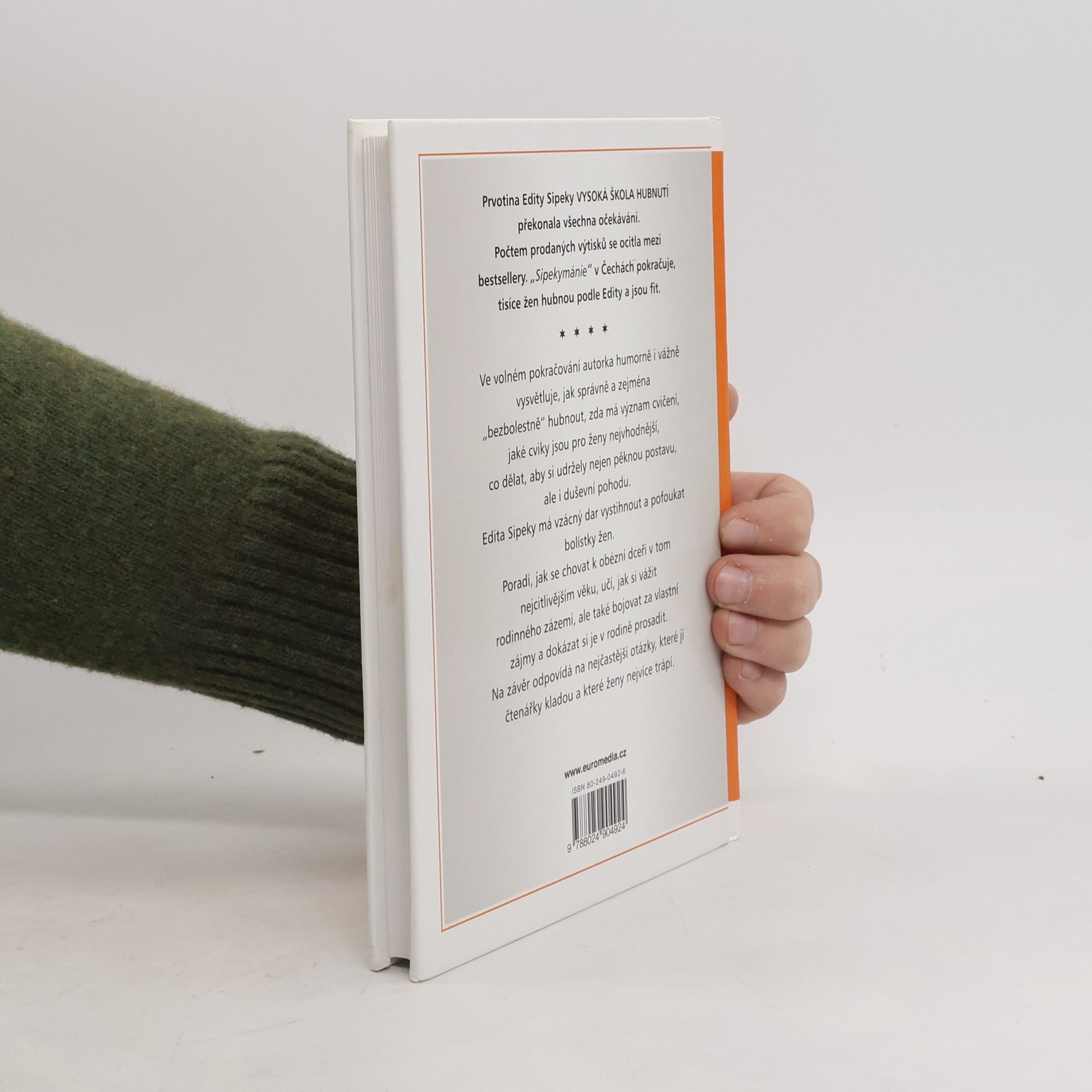 Prvotina Edity Sipeky Vysoká škola hubnutí překonala všechna očekávání. Počtem prodaných výtisků se ocitla mezi bestsellery. "Sipekymánie" v Čechách pokračuje, tisíce žen hubnou podle Edity a jsou fit. Ve volném pokračování autorka humorně i vážně podrobně vysvětluje, jak správně a zejména "bezbolestně" hubnout, zda má význam cvičení, jaké cviky jsou pro ženy nejvhodnější, co dělat, aby si udržely nejen pěknou, pružnou postavu, ale i duševní pohodu. Edita Sipeky má vzácný dar vystihnout a pofoukat bolístky žen. Poradí, jak se chovat k obézní dceři v tom nejcitlivějším věku, učí, jak si vážit rodinného zázemí, ale také bojovat za vlastní zájmy a dokázat si je v rodině prosadit. Na závěr odpovídá na nejčastější otázky, které jí čtenářky kladou a které ženy nejvíce trápí.