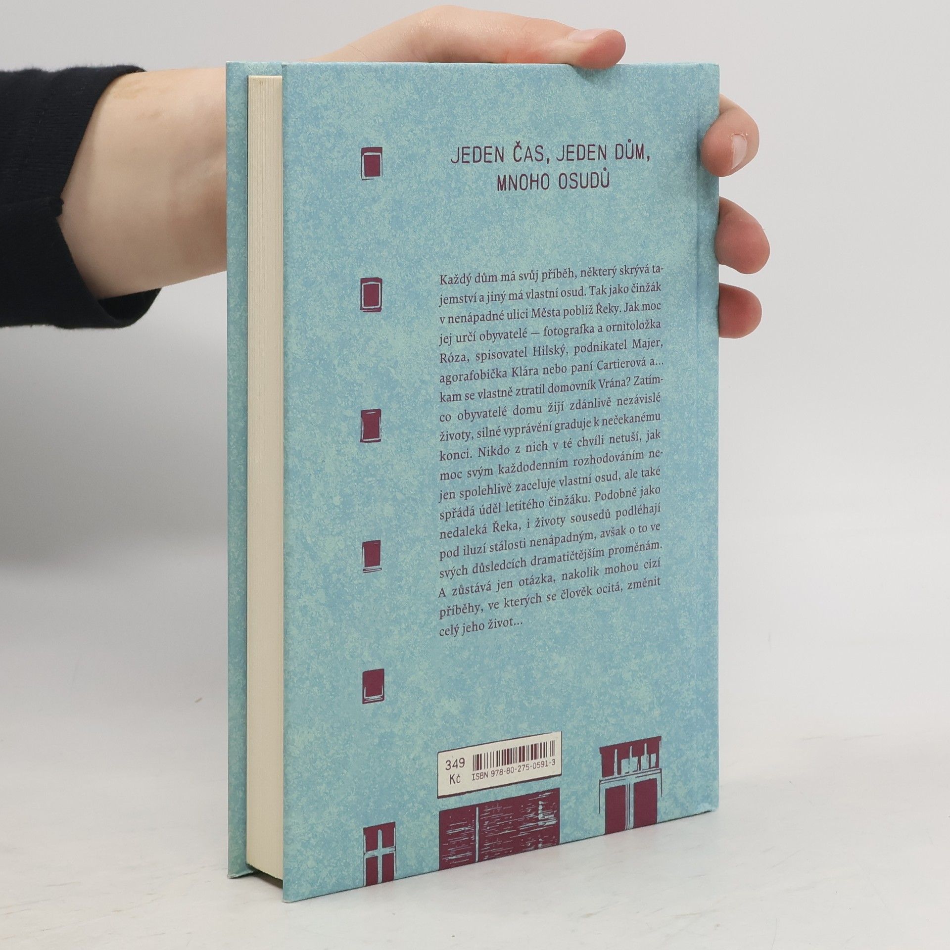 Jeden čas, jeden dům, mnoho osudů Každý dům má svůj příběh, některý skrývá tajemství a jiný má vlastní osud. Tak jako žlutý činžák v nenápadné ulici Města poblíž Řeky. Jak moc jej určí obyvatelé — fotografka a ornitoložka Róza, spisovatel Hilský, podnikatel Majer, agorafobička Klára nebo paní Cartierová a… kam se vlastně ztratil domovník Vrána? Zatímco obyvatelé domu žijí zdánlivě nezávislé životy, silné vyprávění graduje k nečekanému konci. Nikdo z nich v té chvíli netuší, jak moc svým každodenním rozhodováním nejen spolehlivě zaceluje vlastní osud, ale také spřádá úděl letitého činžáku. Podobně jako nedaleká Řeka, i životy sousedů podléhají pod iluzí stálosti nenápadným, avšak o to ve svých důsledcích dramatičtějším proměnám. A zůstává jen otázka, nakolik mohou cizí příběhy, ve kterých se člověk ocitá, změnit celý jeho život…