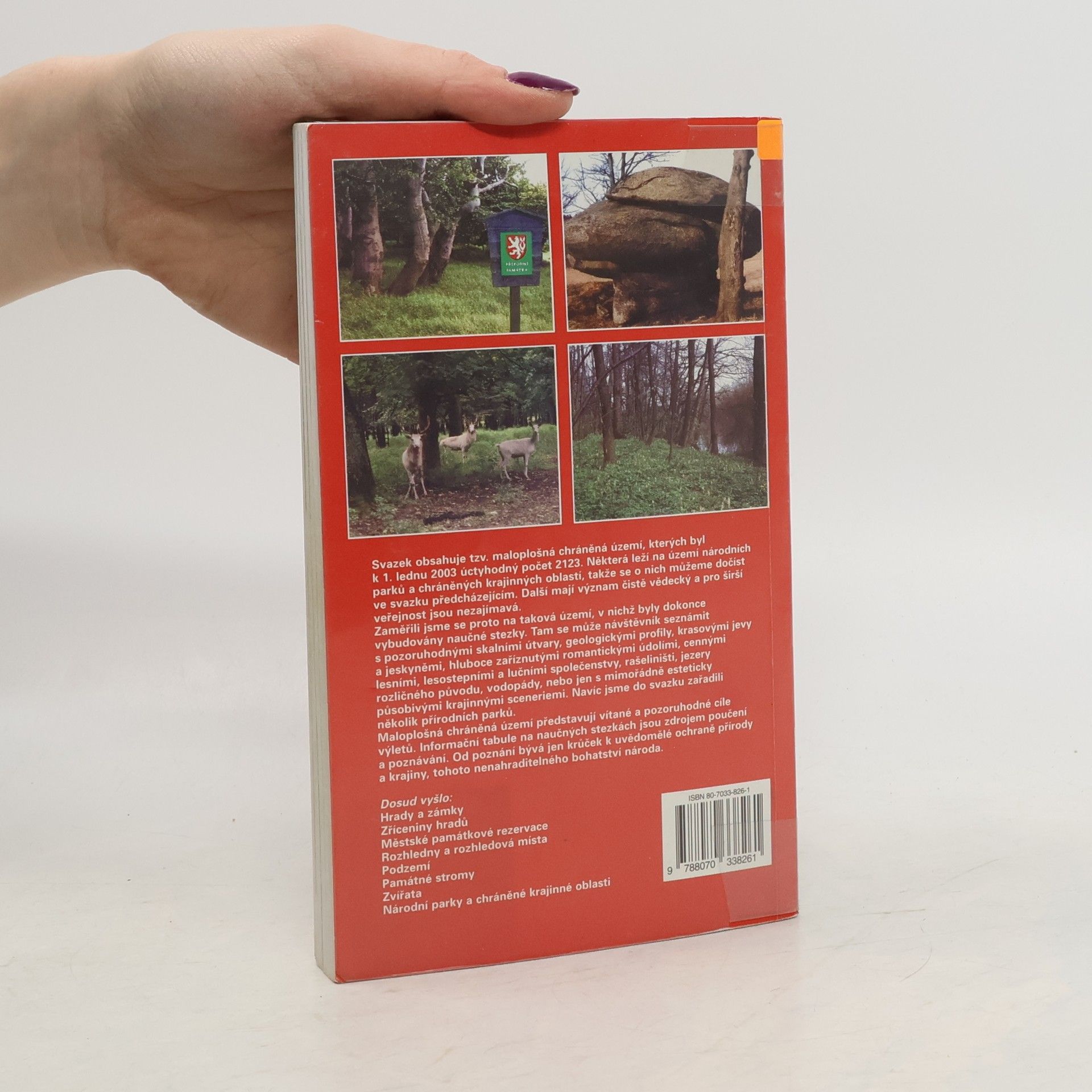 Tento svazek oblíbené edice popisuje maloplošná chráněná území, v nichž návštěvníci mohou vidět zajímavé skalní útvary, jeskyně, geologické profily, romantická údolí, cenné lesní, lesostepní, luční, mokřadní a jiné formace, rašeliniště, jezera, vodopády nebo jen esteticky působivé krajinné scenérie. Tato území jsou vyhledávanými cíli výletů a obvykle jimi procházejí naučné stezky s informačními panely.