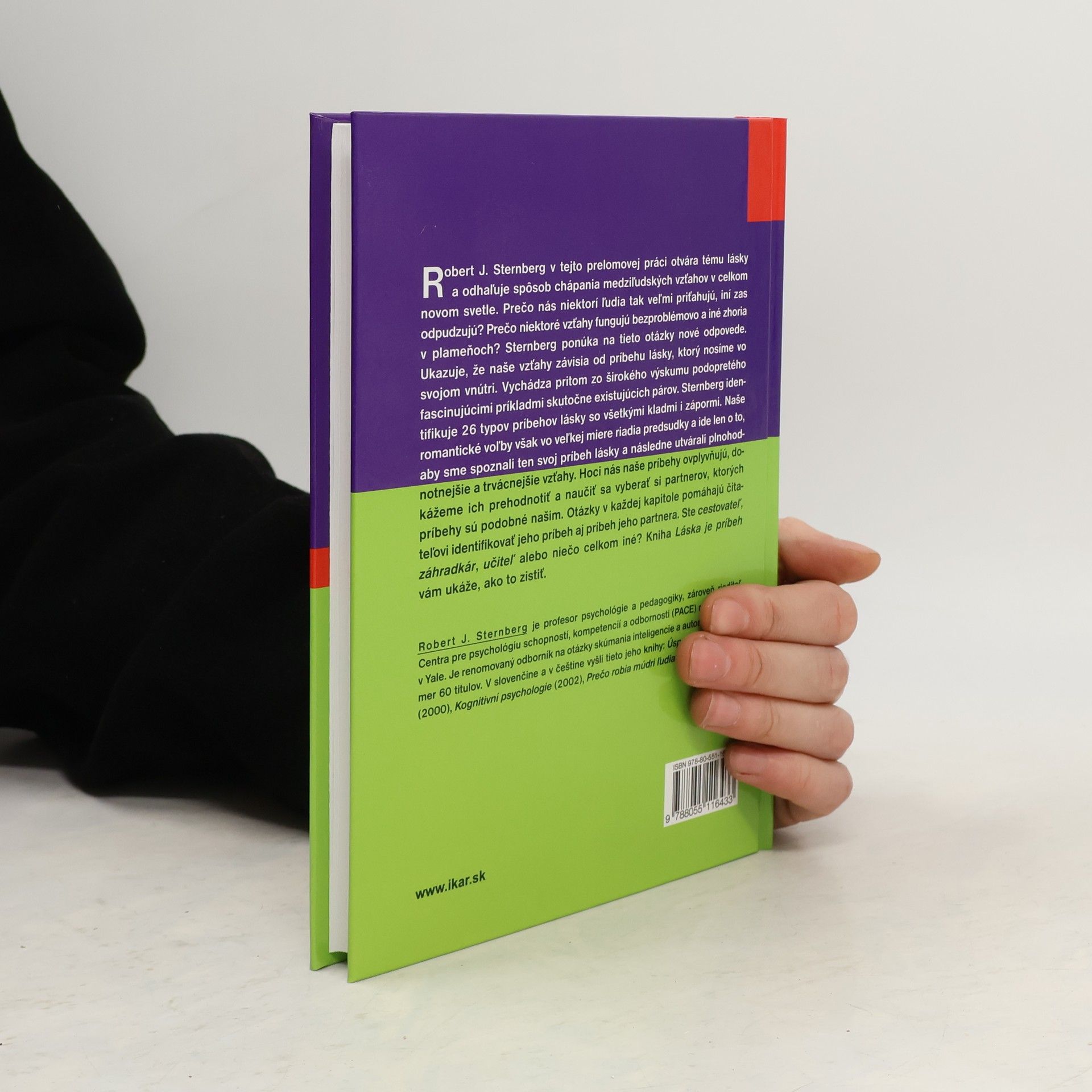 Robert J. Sternberg v tejto prelomovej práci otvára tému lásky a odhaľuje spôsob chápania medziľudských vzťahov v celkom novom svetle. Prečo nás niektorí ľudia tak veľmi priťahujú, iní zas odpudzujú? Prečo niektoré vzťahy fungujú bezproblémovo a iné zhoria v plameňoch? Sternberg ponúka na tieto otázky nové odpovede. Ukazuje, že naše vzťahy závisia od príbehu lásky, ktorý nosíme vo svojom vnútri. Vychádza pritom zo širokého výskumu podopretého fascinujúcimi príkladmi skutočne existujúcich párov. Sternberg identifikuje 26 typov príbehov lásky so všetkými kladmi i zápormi. Naše romantické voľby však vo veľkej miere riadia predsudky a ide len o to, aby sme spoznali ten svoj príbeh lásky, a následne utvárali plnohodnotnejšie a trvácnejšie vzťahy. Hoci nás naše príbehy ovplyvňujú, dokážeme ich prehodnotiť a naučiť sa vyberať si partnerov, ktorých príbehy sú podobné našim. Otázky v každej kapitole pomáhajú čitateľovi identifikovať jeho príbeh aj príbeh jeho partnera. Ste cestovateľ, záhradkár, učiteľ alebo niečo celkom iné? Kniha Láska je príbeh vám ukáže, ako to zistiť.