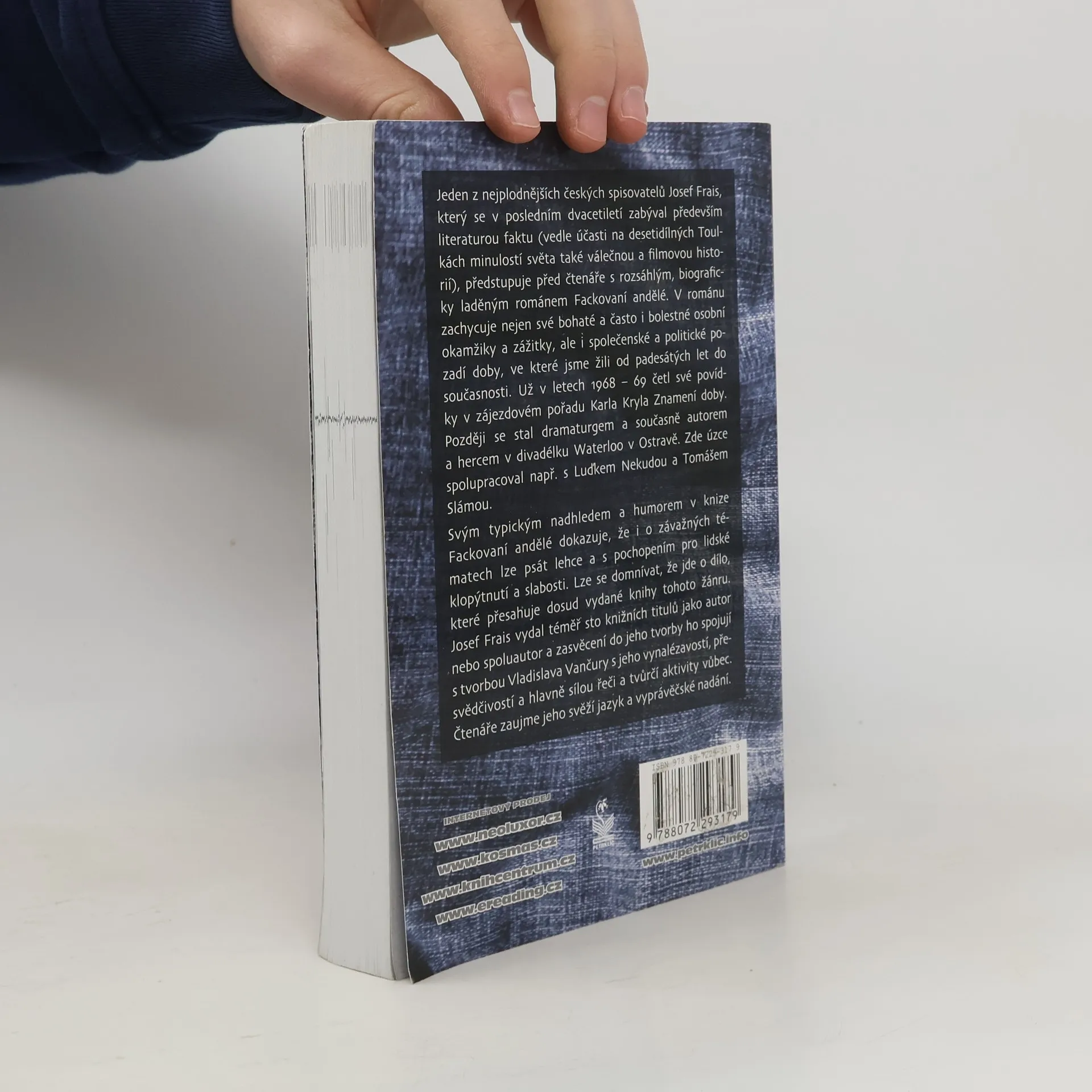 Jeden z nejplodnějších českých spisovatelů Josef Frais, který se v posledním dvacetiletí zabýval především literaturou faktu (vedle účasti na desetidílných Toulkách minulostí světa také válečnou a filmovou historií), předstupuje před čtenáře s rozsáhlým, biograficky laděným románem Fackovaní andělé. V románu zachycuje nejen své bohaté a často i bolestné osobní okamžiky a zážitky, ale i společenské a politické pozadí doby, ve které jsme žili od padesátých let do současnosti. Už v letech 1968 - 69 četl své povídky v zájezdovém pořadu Karla Kryla Znamení doby. Později se stal dramaturgem a současně autorem a hercem v divadélku Waterloo v Ostravě. Zde úzce spolupracoval např. s Luďkem Nekudou a Tomášem Slámou. Svým typickým nadhledem a humorem v knize Fackovaní andělé dokazuje, že i o závažných tématech lze psát lehce a s pochopením pro lidské klopýtnutí a slabosti. Lze se domnívat, že jde o dílo, které přesahuje dosud vydané knihy tohoto žánru. Josef Frais vydal téměř sto knižních titulů jako autor nebo spoluautor a zasvěcení do jeho tvorby ho spojují s tvorbou Vladislava Vančury s jeho vynalézavostí, přesvědčivostí a hlavně sílou řeči a tvůrčí aktivity vůbec. Čtenáře zaujme jeho svěží jazyk a vyprávěčské nadání.