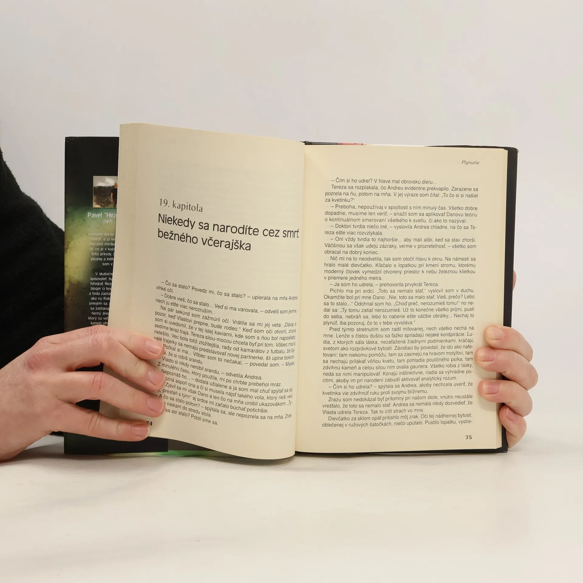 Ako je už u Hiraxa známe, nevsádza na silný príbeh, ale o to viac ide do hĺbky duší hlavných hrdinov. Dokopy sa v tejto knihe nestane vlastne nič, a pritom tak veľa vo vnútrach ľudí... Jeden človek zoberie dlažobnú kocku a pošle ňou iného človeka do kómy. Unesie láska dvoch mladých ľudí tento hrozný čin? Rozdelí ich to, alebo naučí životom len tak plynúť? „Plynutie je kľúč k vyrovnanému a šťastnému životu,“ radí priateľ Dano hlavným hrdinom. Sám totiž doma zažíva neharmonické manželstvo plné zbytočných hádok a sporov. No miesto toho, aby sa bez rozmyslu rozviedol, ako mu to vo veľkej miere radí a ukazuje okolie, začína hľadať súvislosti, problém si váži a začína ho riešiť. Kým sa mu to podarí, zdokonaľuje sa v plynutí... Peklo vzniká vtedy, keď čakáte nebo. Harmónia je len iný druh smrti. Nič nie je horšie ako umrieť, a predtým sa neodhlásiť z Facebooku. Dôverujte životu, nikdy nikoho nepodviedol. Akí budeme dnes, taký bude svet zajtra. Čím čistejšia duša, tým väčšia bolesť. Každá karma sa začína rozhodnutím. Úprimnosť je dar, neočakávajte ju od slabých ľudí. Každý človek na svete sa v niečom motá. Sledujte deti a znova objímete svet. Svet nechce byť klamaný. Šťastie sa rodí z nešťastia. Šťastie plodí šťastie.