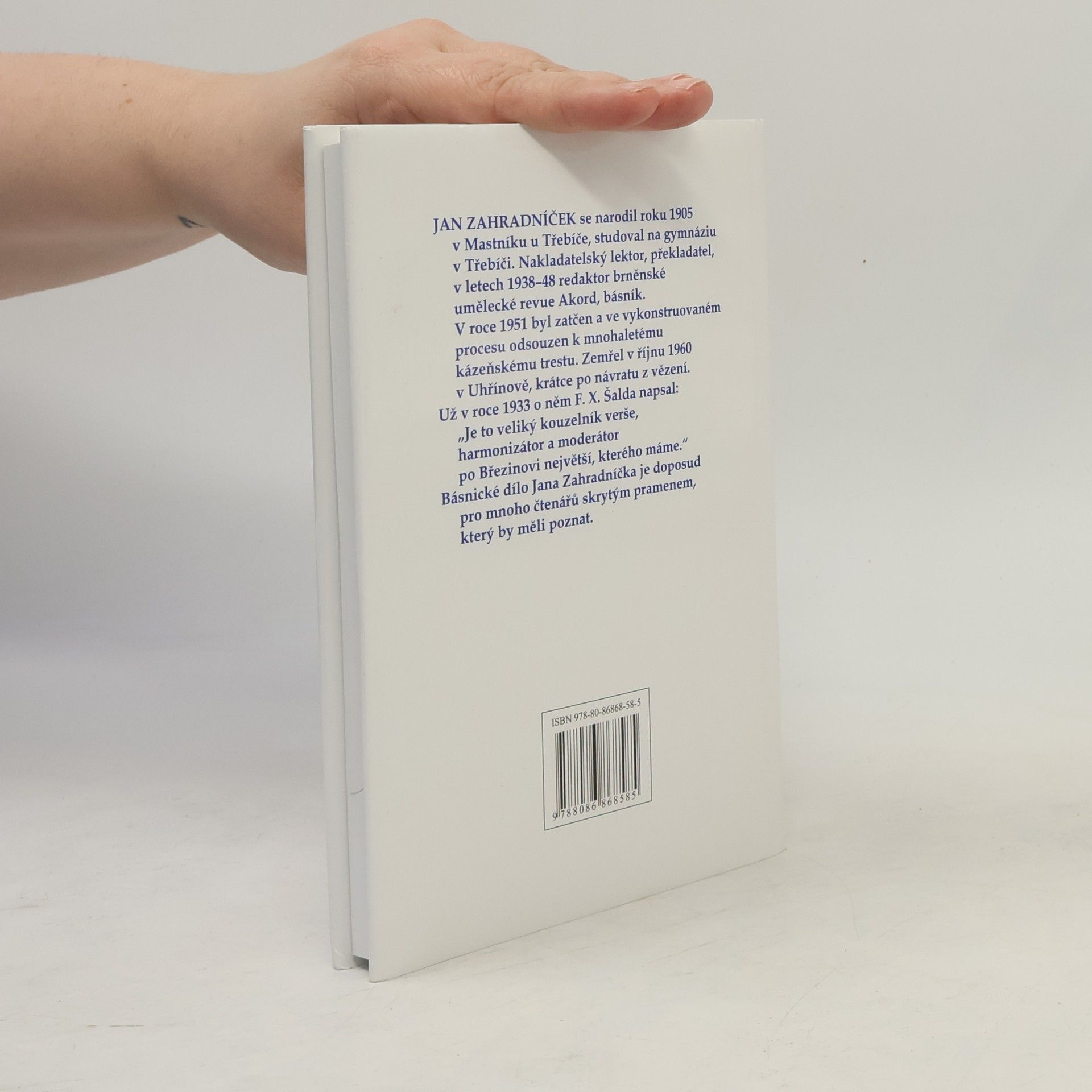 J. Zahradníček pracoval jako nakladatelský lektor, překladatel, v letech 1938–48 jako redaktor brněnské umělecké revue Akord. V roce 1951 byl zatčen a ve vykonstruovaném procesu odsouzen k mnohaletému kázeňskému trestu. Zemřel v říjnu 1960 v Uhřínově, krátce po návratu z vězení. Básnické dílo Jana Zahradníčka je doposud pro mnoho čtenářů pramenem, který by měli poznat.