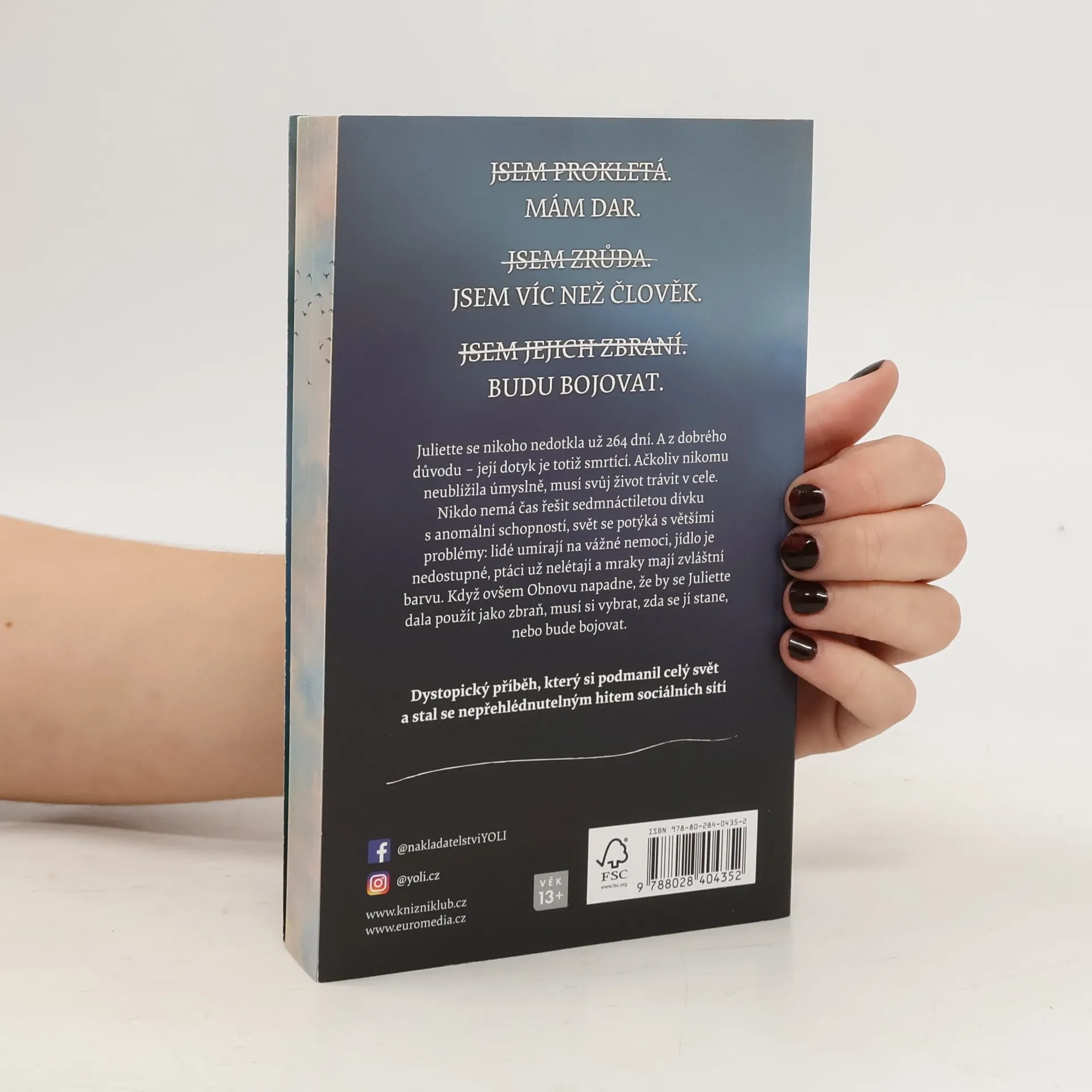 Juliette se nikoho nedotkla už 264 dní. A z dobrého důvodu – její dotyk je totiž smrtící. Ačkoliv nikomu neublížila úmyslně, musí nyní trávit svůj život v cele. Nikdo totiž nemá čas řešit sedmnáctiletou dívku s anomální schopností, svět se potýká s většími problémy – lidé umírají na vážné nemoci, jídlo je nedostupné, ptáci už nelétají a mraky mají zvláštní barvu. Když ovšem Obnovu napadne, že by se Juliette dala použít jako zbraň, musí si vybrat: zda se jí stane, nebo bude bojovat. Doporučený věk 13+