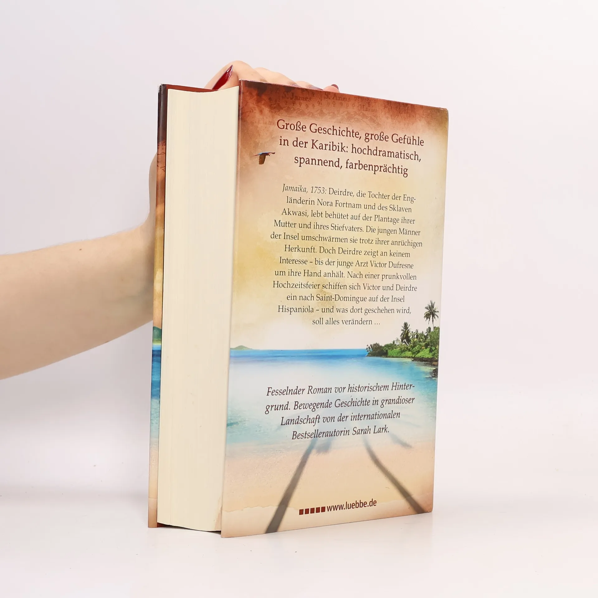 Jamaika, 1753: Deirdre, die Tochter der Engländerin Nora Fortnam und des Sklaven Akwasi, lebt behütet auf der Plantage ihrer Mutter und ihres Stiefvaters. Die jungen Männer der Insel umschwärmen sie trotz ihrer anrüchigen Herkunft. Doch Deirdre zeigt an keinem Interesse - bis der junge Arzt Victor Dufresne um ihre Hand anhält. Nach einer prunkvollen Hochzeitsfeier schiffen sich Victor und Deirdre ein nach Saint-Domingue auf der Insel Hispaniola - und was dort geschehen wird, soll alles verändern - Fesselnder Roman vor historischem Hintergrund. Bewegende Geschichte in grandioser Landschaft von der internationalen Bestsellerautorin Sarah Lark.