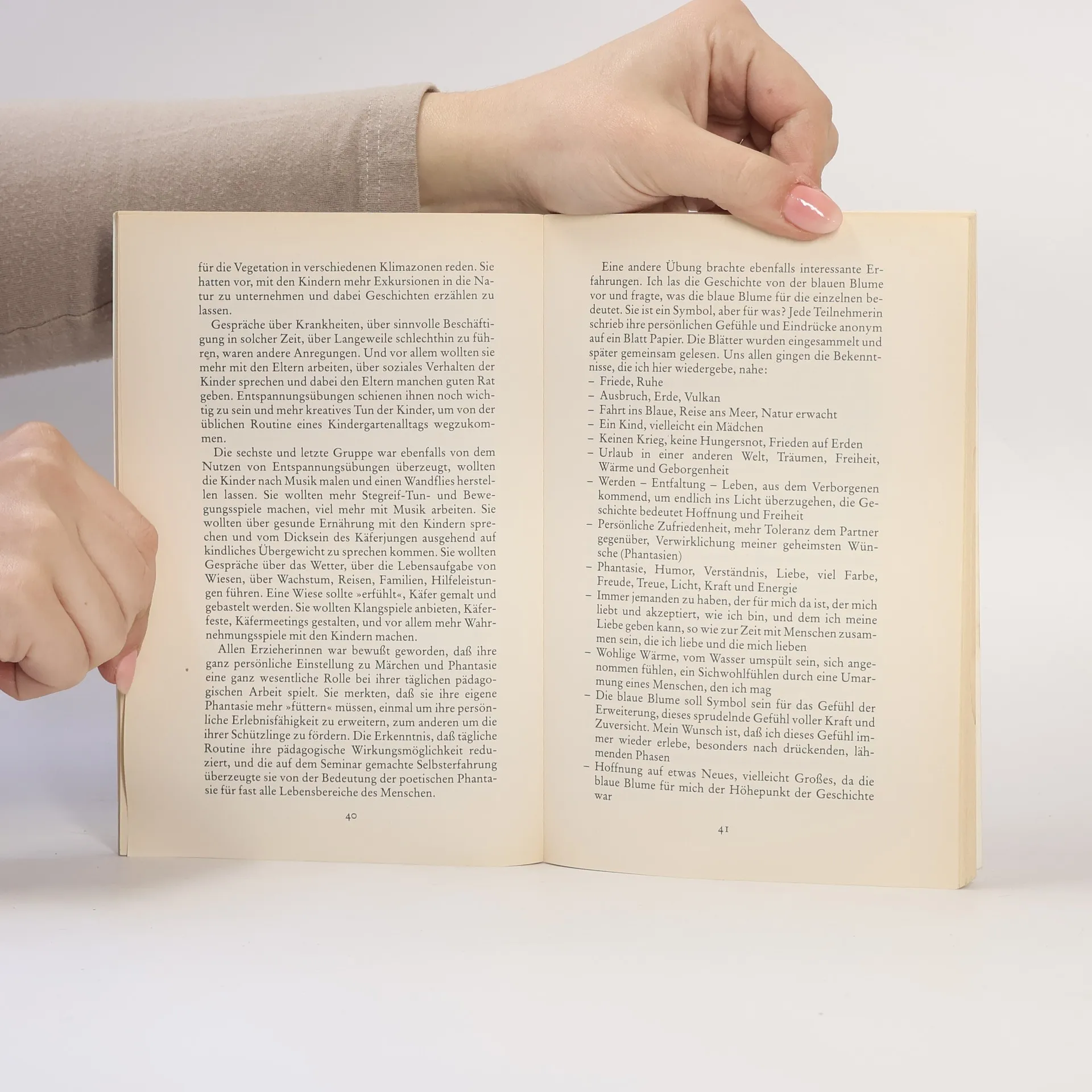 Diese Märchen wurden zwar für Kinder geschrieben, doch werden sie auch auf die damit befaßten Erwachsenen ihre Wirkung nicht verfehlen. Es sind Gute-Nacht-Geschichten, die Eltern abends vorlesen, die aber auch von Erzieherinnen und anderen Gruppenleitern ganz allgemein als farbige und zugleich beruhigende Geschichten eingesetzt werden können. Eingebunden in diese Märchen sind die therapeutischen Wirkungen des Autogenen Trainings, die zu tiefer Ruhe und Entspannung führen - ein Zustand, der heute auch von Kindern nur noch höchst selten erlebt wird. Kinder können sich mit der Hauptfigur in diesen phantasievollen Märchen identifizieren und die Abenteuer miterleben. Die Spannungsbögen werden jedoch immer wieder aufgelöst durch die Hinführung zu den beruhigenden Formeln des Autogenen Trainings, die übrigens meist nicht nur auf den Zuhörenden, sondern auch auf den Vorlesenden wirken. Die von Else Müller verfaßten Märchen bieten darüber hinaus noch vielfältige pädagogische Möglichkeiten. Sie dienen der Schärfung der Wahrnehmung von emotionalen Problemen, sozialen Bedingungen und sinnlichen Erfahrungen.