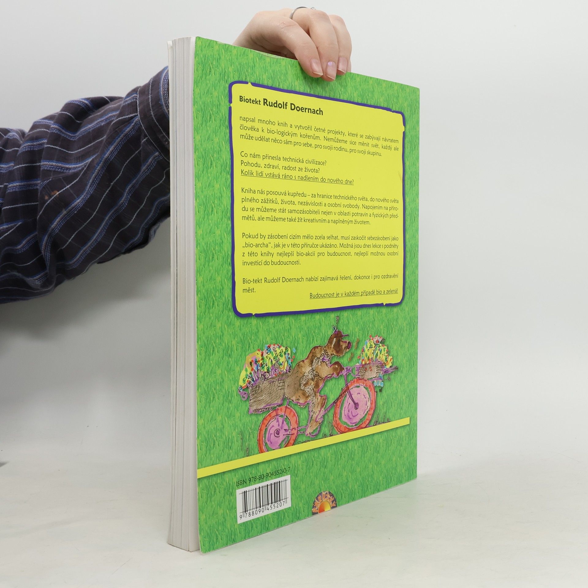 Architekt Rudolf Doernach napsal mnoho knih a vytvořil četné projekty, které se zabývají návratem člověka k bio-logickým kořenům. Nemůžeme sice měnit svět, každý ale může udělat něco sám pro sebe, pro svoji rodinu, pro svoji skupinu. Co nám přinesla technická civilizace? Pohodu, zdraví, radost ze života? Kolik lidí vstává ráno s nadšením do nového dne? Kniha nás posouvá kupředu - za hranice technického světa, do nového světa plného zážitků, života, nezávislosti a osobní svobody. Napojením na přírodu se můžeme stát samozásobiteli nejen v oblasti potravin a fyzických předmětů, ale můžeme také žít kreativním a naplněným životem. Pokud by zásobení cizím mělo zcela selhat, musí zaskočit sebezásobení jako „bio-archa“, jak je v této příručce ukázáno. Možná jsou dnes lekce s podněty z této knihy nejlepší bio-akcií pro budoucnost, nejlepší možnou osobní investicí do budoucnosti. Bio-tekt Rudolf Doernach nabízí zajímavá řešení, dokonce i pro ozdravění měst. Budoucnost je v každém případě bio a zelená!