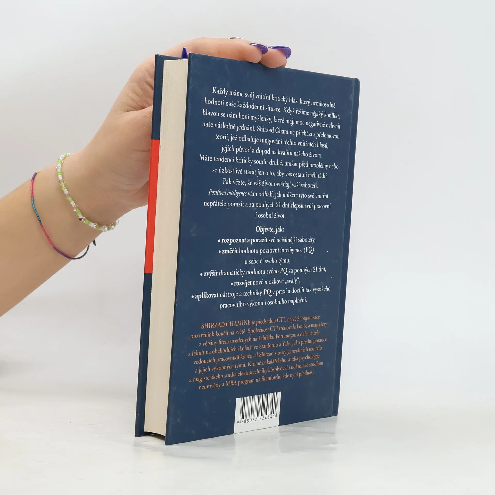 Proč je PI tak důležitá pro vaši kariéru i vztahy Každý máme svůj vnitřní kritický hlas, který nemilosrdně hodnotí naše každodenní situace. Když řešíme nějaký konflikt, hlavou se nám honí myšlenky, které mají moc negativně ovlivnit naše následné jednání. Shirzad Chamine přichází s přelomovou teorií, jež odhaluje fungování těchto vnitřních hlasů, jejich původ a dopad na kvalitu našeho života. Máte tendenci kriticky soudit druhé, unikat před problémy nebo se úzkostlivě starat jen o to, aby vás ostatní měli rádi? Pak vězte, že váš život ovládají vaši sabotéři. Pozitivní inteligence vám odhalí, jak můžete tyto své vnitřní nepřátele porazit a za pouhých 21 dní zlepšit svůj pracovní i osobní život. Objevte, jak: • rozpoznat a porazit své nejsilnější sabotéry, • změřit hodnotu pozitivní inteligence (PQ) u sebe či svého týmu, • zvýšit dramaticky hodnotu svého PQ za pouhých 21 dní, • rozvíjet nové mozkové „svaly“, • aplikovat nástroje a techniky PQ v praxi a docílit tak vysokého pracovního výkonu i osobního naplnění.