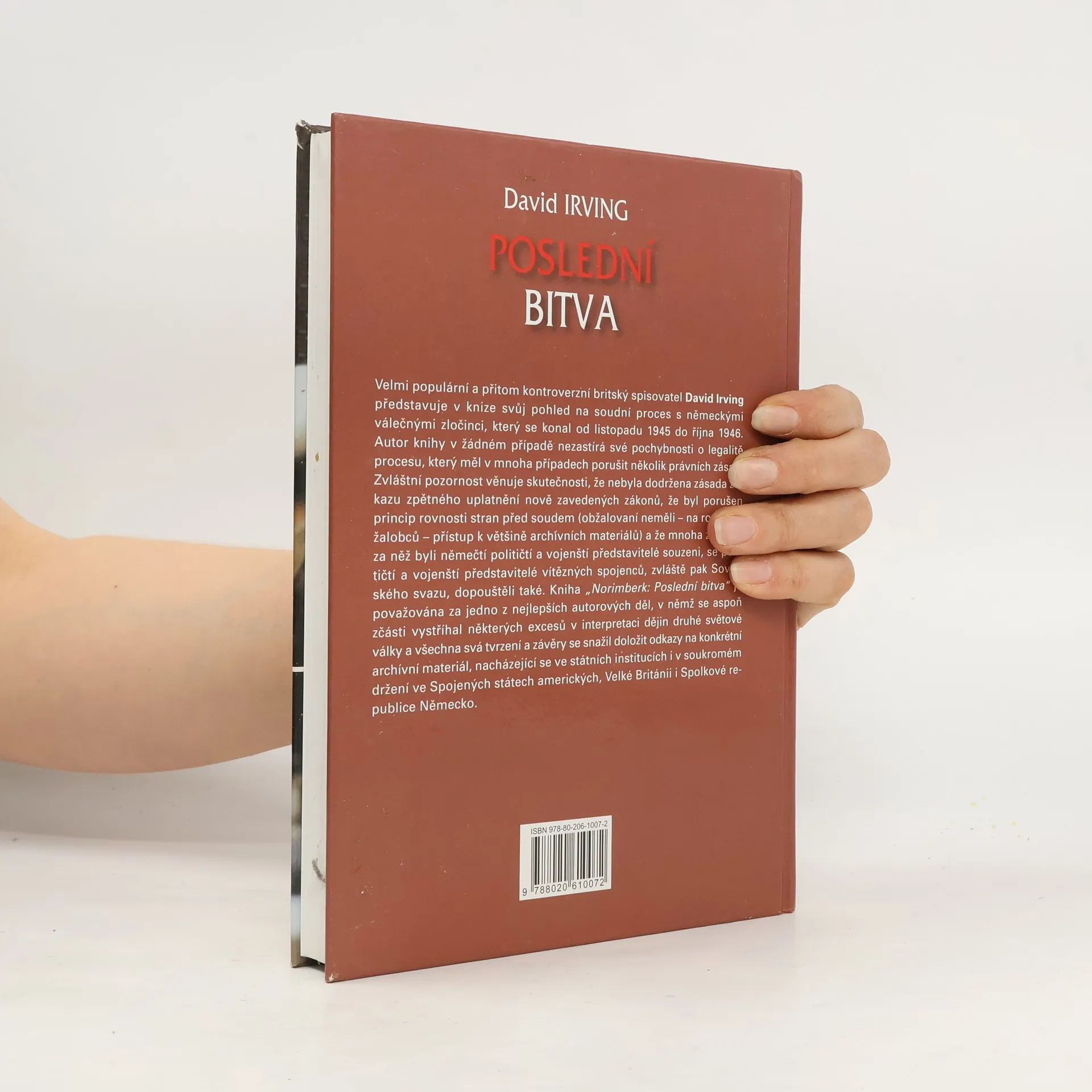 Podtitul: Poslední bitva Velmi populární a přitom kontroverzní britský spisovatel David Irving představuje v knize svůj pohled na soudní proces s německými válečnými zločinci, který se konal od listopadu 1945 do října 1946. Autor knihy v žádném případě nezastírá své pochybnosti o legalitě procesu, který měl v mnoha případech porušit několik právních zásad. Zvláštní pozornost věnuje skutečnosti, že nebyla dodržena zásada zákazu zpětného uplatnění nově zavedených zákonů, že byl porušen princip rovnosti stran před soudem (obžalovaní neměli – na rozdíl od žalobců – přístup k většině archívních materiálů) a že mnoha zločinů, za něž byli němečtí političtí a vojenští představitelé souzeni, se političtí a vojenští představitelé vítězných spojenců, zvláště pak Sovětského svazu, dopouštěli také. Kniha „Norimberk: Poslední bitva“ je považována za jedno z nejlepších autorových děl, v němž se aspoň zčásti vystříhal některých excesů v interpretaci dějin druhé světové války a všechna svá tvrzení a závěry se snažil doložit odkazy na konkrétní archívní materiál, nacházející se ve státních institucích i v soukromém držení ve Spojených státech amerických, Velké Británii i Spolkové republice Německo.