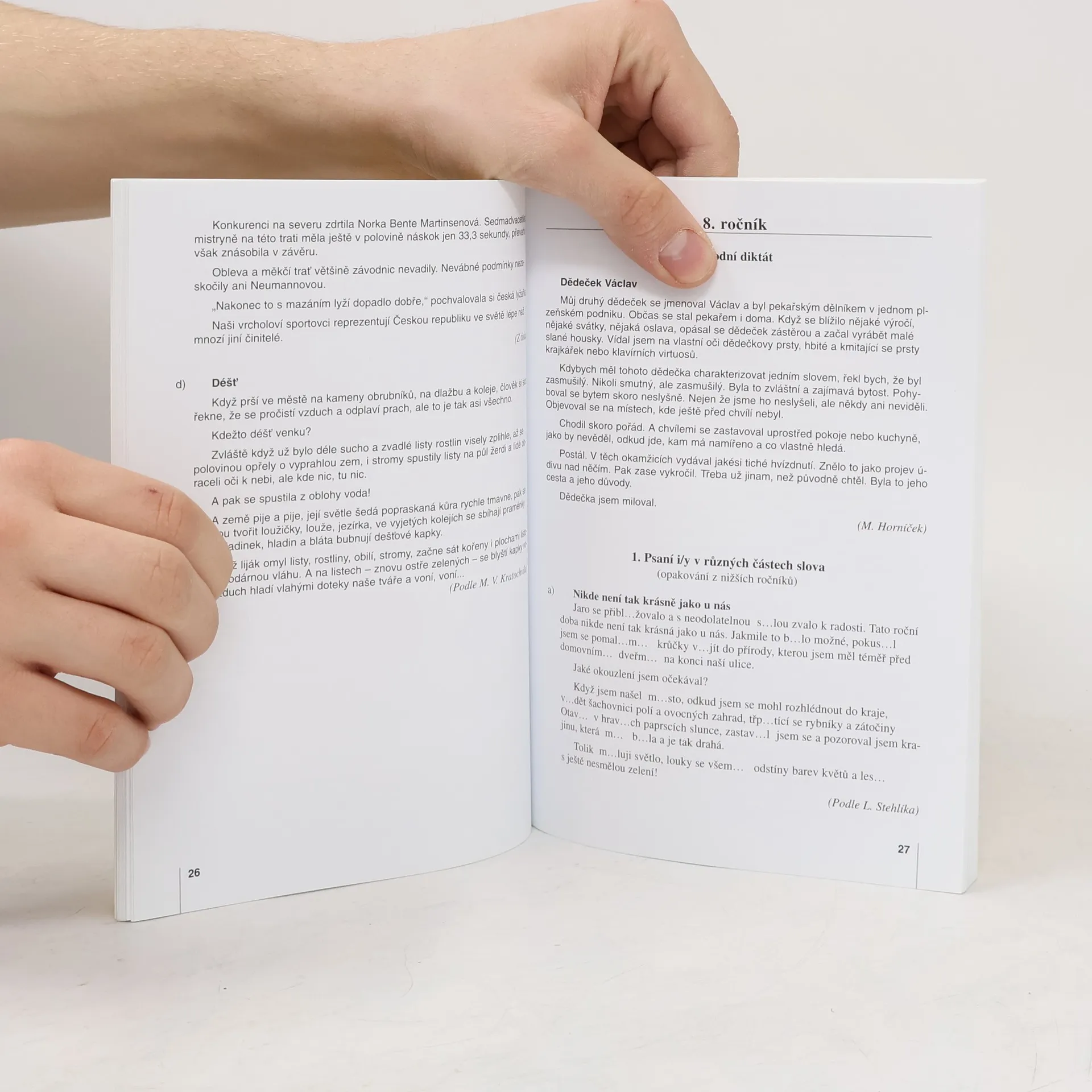 "Příští hodinu si napíšeme diktát," hlásí paní učitelka. Bát se, nebo se těšit? Diktát je tradičním postrachem většiny žáků a studentů. Málokdo z nich se těší na ten příští. Ale měl by se těšit, protože v diktátu může nejlépe ukázat, jaké už jsou jeho pravopisné znalosti a dovednosti. A chyby, kterých se v minulém diktátu dopustil, ho jen upozorní, na co si musí dát příště pozor. Naše příručka vás chce zbavit strachu z diktátu. Příručka obsahuje jednak diktáty, jednak pravopisná cvičení, v nichž jsou vynechána některá písmena nebo interpunkční (členící) znaménka. Uživatelé naší příručky si při práci s ní nejen zkontrolují své dosavadní pravopisné znalosti, ale také si je prohloubí, rozšíří a doplní o nové.«