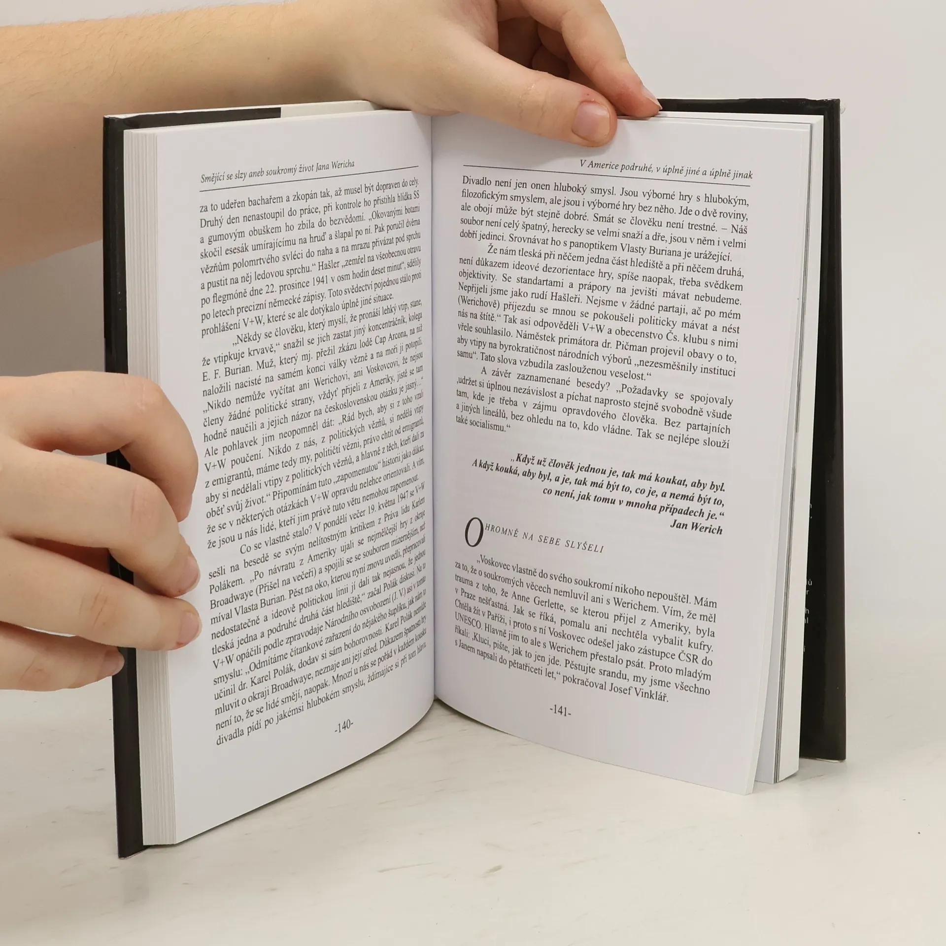 Kniha obsahuje dosud nepublikované výňatky z osobní korespondence a dokumenty, které pravdivě osvětlují nejen předválečné i poválečné vztahy s Jiřím Voskovcem, ale i okolnosti některých jeho kroků, o nichž se hodně diskutovalo, například spoluúčast na podpisu anticharty. Kniha prostřednictvím výpovědí jeho přátel rozkrývá složité osobní vztahy Jana Wericha, které bývaly pro veřejnost obvykle tabu.... celý text