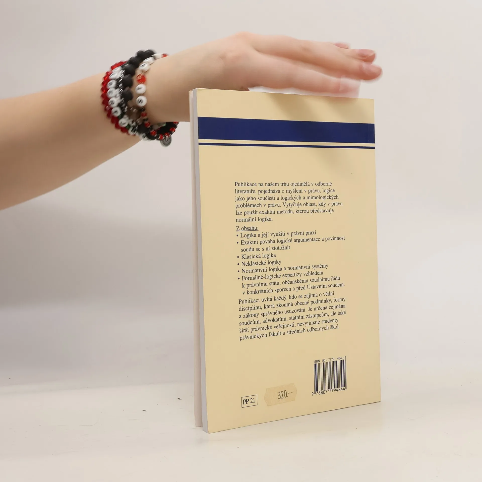 Publikace prezentuje logiku a potřebu jejího využívání v právní praxi. Jejím těžištěm je výklad principů normativní logiky včetně nejnovějších výsledků této disciplíny. Na něj navazuje logická teorie výstavby normativních systémů s aplikacemi logických principů v právu. Zahrnuje i nástin neklasických (zejména modálních) logik, jakož i metod a forem pravděpodobnostního usuzování, a typy úsudků z této oblasti, s nimiž se lze setkat v právní praxi.